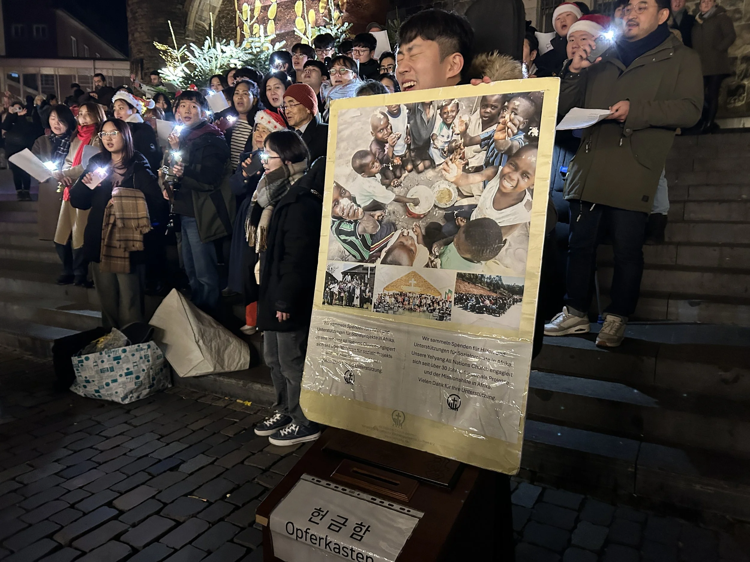 거리로 나아가 예수님의 탄생을 알리고, 아프리카 선교를 위한 모금을 합니다.